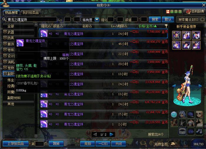 除了武器、上衣、下装之外,腰带、头肩和鞋子如果不打节日宝珠的话,青龙之魂宝珠你可以了解一下。将近400W金币一个,如果单单只是门槛奶妈,不太值得购买。