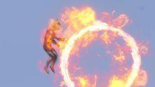 与[欧布火之剑]拥有相似的能力。转动剑盘的四属性选择炎属性后划出一个火圈,随后将火圈推向敌人。