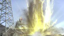 与[欧布地之剑]拥有相似的能力,转动剑盘的四属性选择岩属性后将剑刺入地内,使被刺中的土地周围飞出巨大的岩石块砸向敌人。