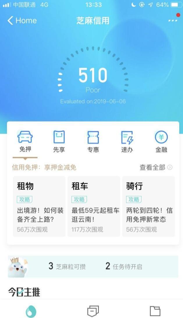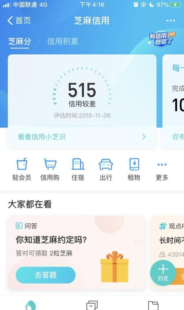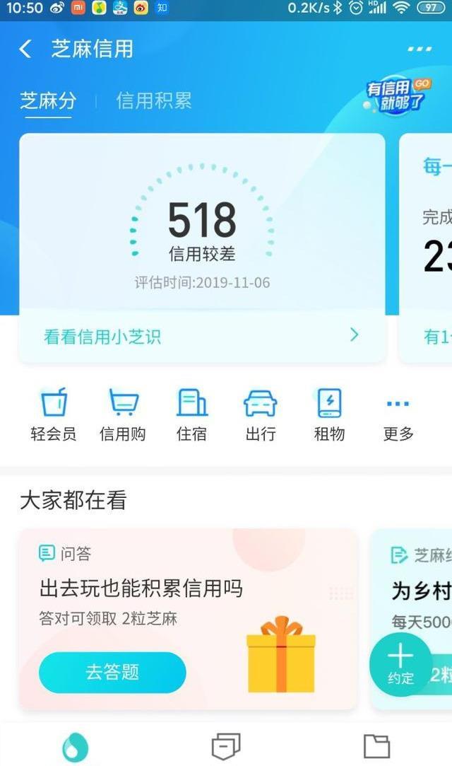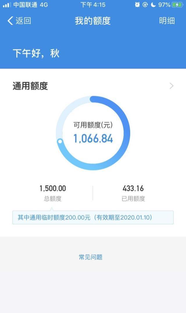 然后现在就变成了这样。不过还好 平时使用什么的也不碍事 之前给客服打过电话 说坚持使用支付宝信用分什么的慢慢就上来了