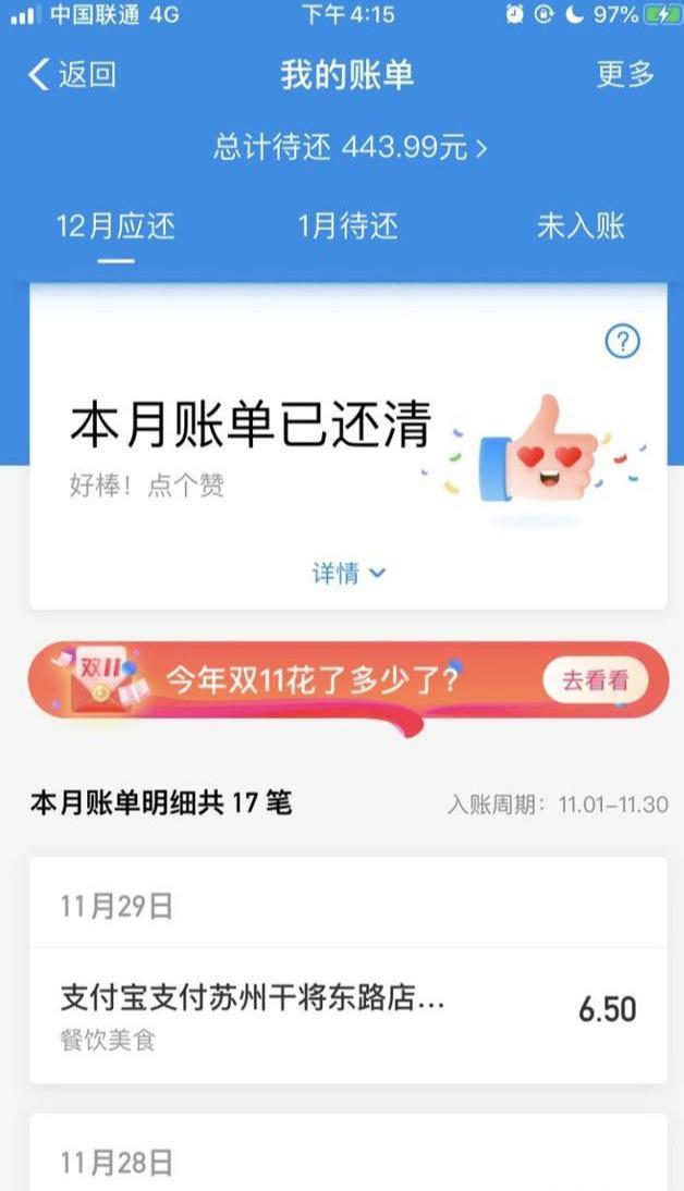 所以那些还没欠花呗的尽量不要欠,没钱了,哪怕是还最低也行,但是最低还款也只能使用一两期,因为每期未还款的部分会累积到下一期的最低还款里,使得最低还款会越来越高。