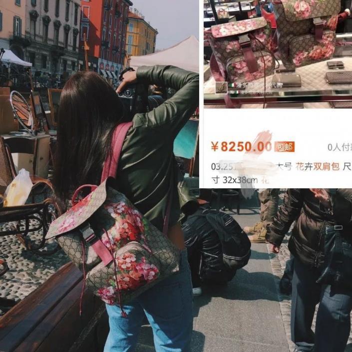 而此番游玩意大利所背的包包正是某G字母开头的奢侈品牌。