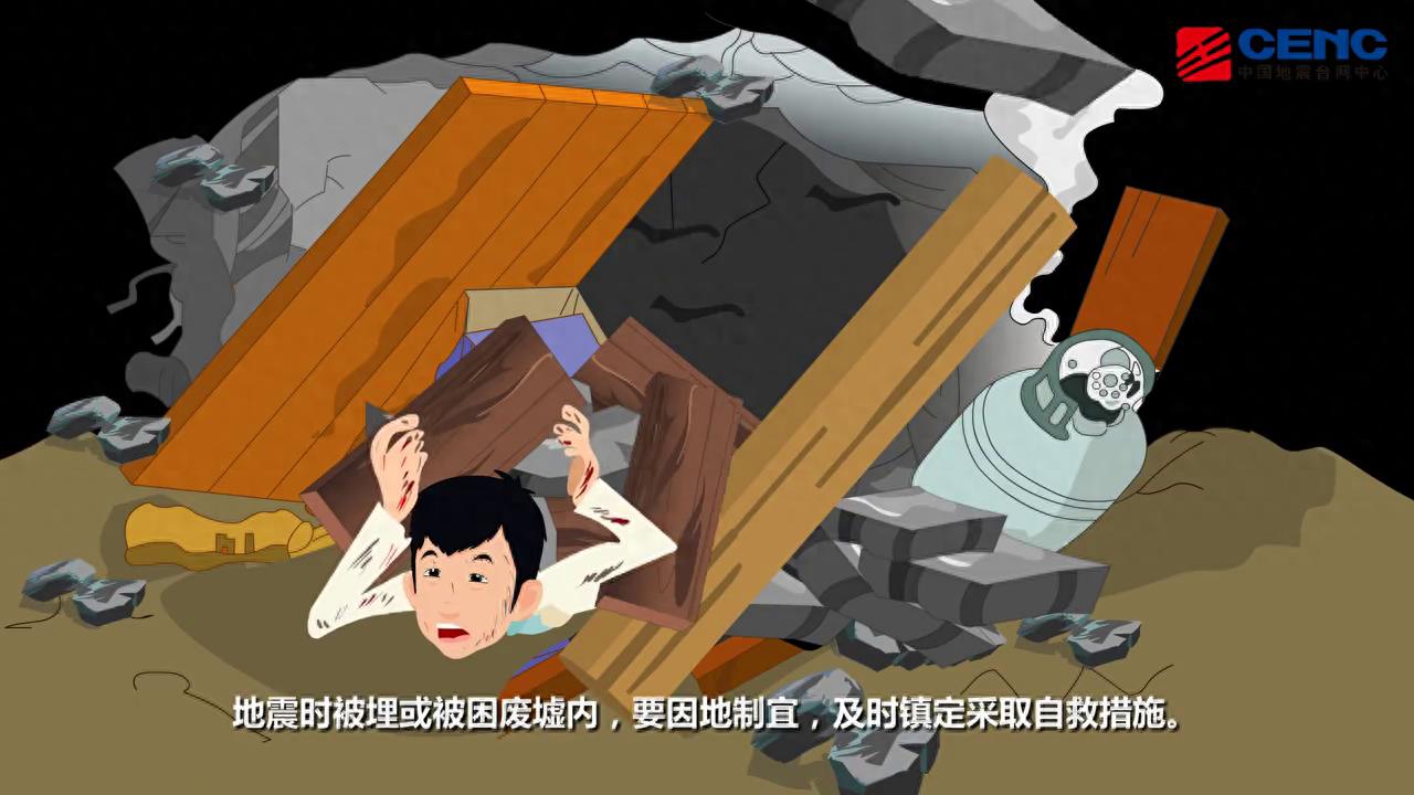 地震时被埋或被困废墟内要因地制宜,及时镇定采取自救措施。