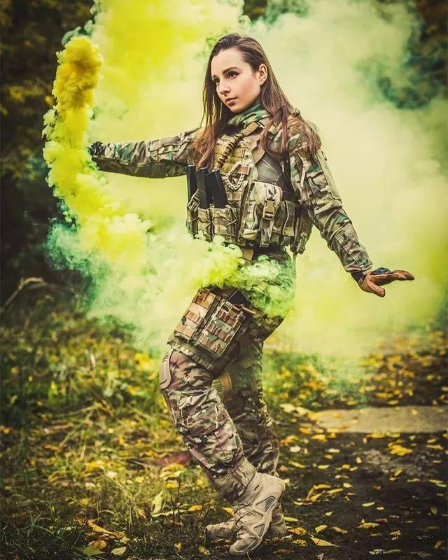 国内不知道有没有拍这种题材的地方,军装应该不能随便这样用来拍照,这样的照片对模特的身材要求应该不低,那种衣服架子的模特身材就无法撑起这样的军事装备,更不要说展示出女性柔美之外的阳刚之气了!