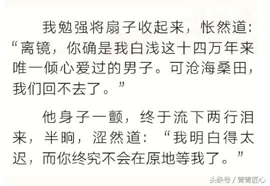 当看到离境在酒后表白司音,晨起离境看到司音的表情落荒而逃时,我是内心欢喜的;当离境出逃之后,用尽方法让司音答应时,我是满心祝福的;可是后来,离境到底是究竟风月之人,一直都是其他女子给他献情,司音虽然从小玩闹,却在感情之事上还是懵懵懂懂的,给离境的回应只能是一点一滴,细水流长的。此时的离境只得到这样一些,终究是会觉得司音不够爱他。