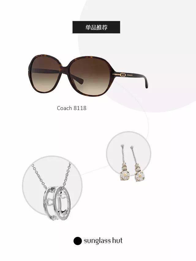 COACH简约有型的猫型圈形墨镜,简直就是为圆形脸而生。四方宽阔的的廓形,不仅能拉长脸型,更能增强脸部轮廓,加上深色的渐变镜片,完美降低脸部圆润的感觉,搭配长项链或者耳环,时髦度爆棚,“福气”瞬间变“人气”,美丽又吸睛。