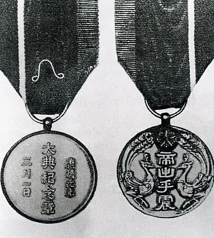 1934年伪满为纪念溥仪登极称帝而颁发的登极大典纪念章。