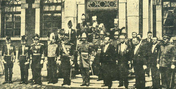 1934年3月1日,溥仪僭皇帝位,日本驻伪满“全权大使”菱刈隆向伪帝呈递“国书”。