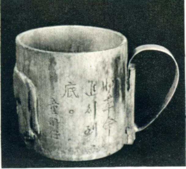 坚持南方游击战争的战士自制的竹杯,上面刻有“将革命进行到底”。