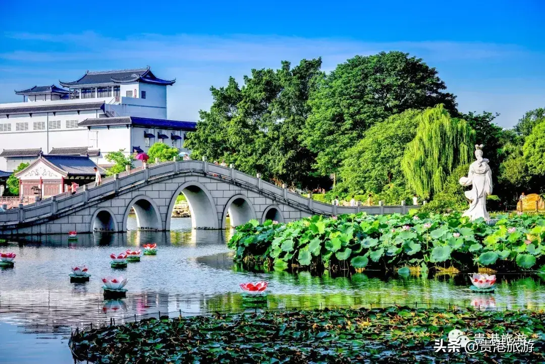 这里有水域面积680多亩,湖中有“荷花仙女”、“仙鹤”、“大鹏”等雕塑造型。盛夏时节,这里荷叶碧绿,荷花艳香,垂杨飘拂,招来成千成万的燕子。“东湖荷燕”被定为贵港市新八景之一。