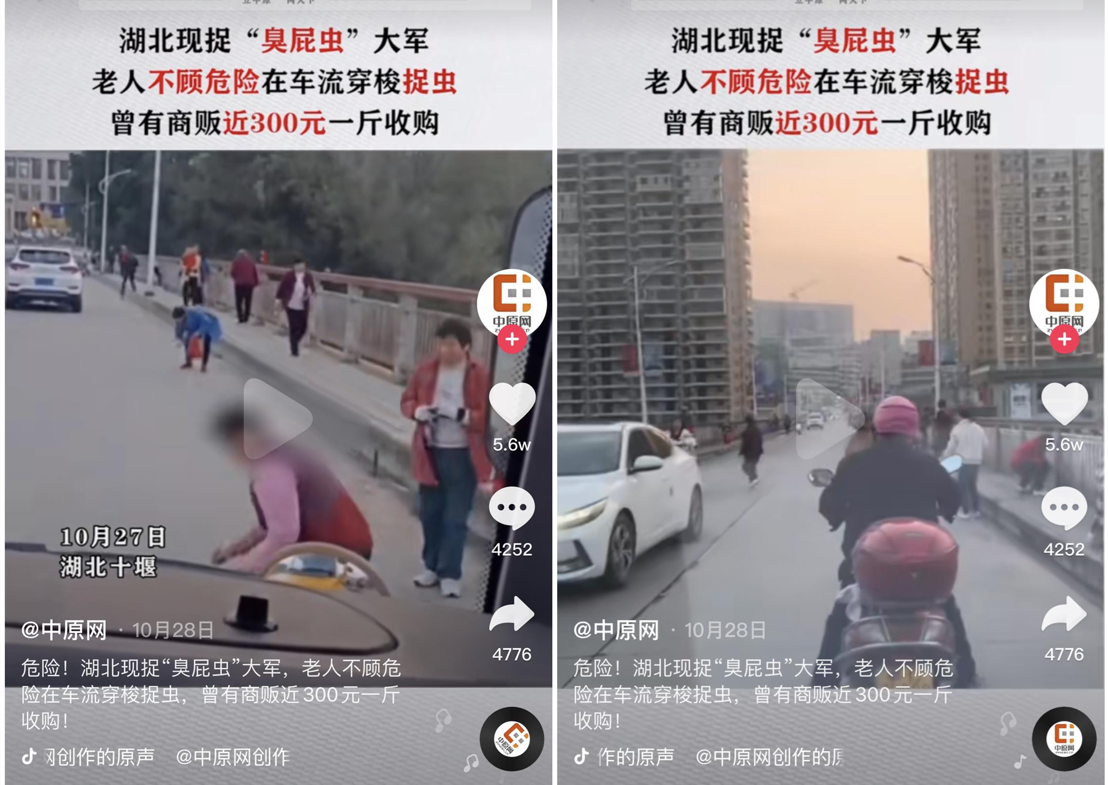 这种“捉虫大军”之前也出现过,比如2014年的时候,湖北竹山县附近的河滩,有数百名群众抢着捉臭屁虫拿来卖。手脚麻利的一天基本能捉一斤多,当时的收购价格是150元一斤,还有的地方专门捉来当美食吃。臭屁虫都有什么用?真的能吃吗?来来来,关注过客,听过客说。