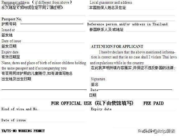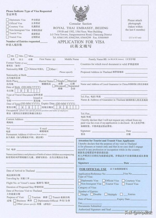 泰国旅游签证|泰国旅游签证申请表填写样本中文版