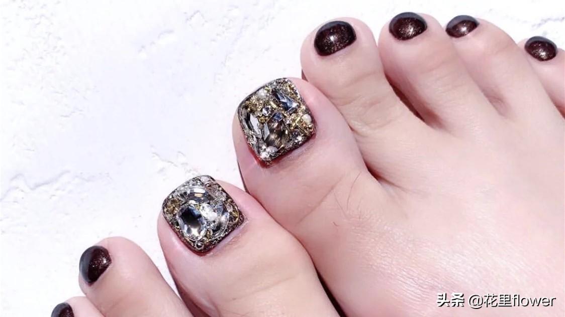 都说好看的东西是千篇一律 ,这句话是没错的!今天推荐的全是超级显白系列,不管你的脚有多黄,都无敌的显白,这张图片采用了酒红色进行了搭配,大拇指采用了金色的满钻,其中还用了银色的胶,整体看起来高贵又不失妩媚,脚指甲换上它,你的脚甲会出众加倍。喜欢黑色的妹纸一定要试试它。