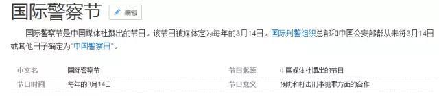 在互联网上搜索“国际警察日”,所有的解释惊人地相似——“每年的3月14日是‘国际警察日’,是国际刑警组织于1995年确立的”;“我国的‘警察日’是公安部在2004年确立的”。
