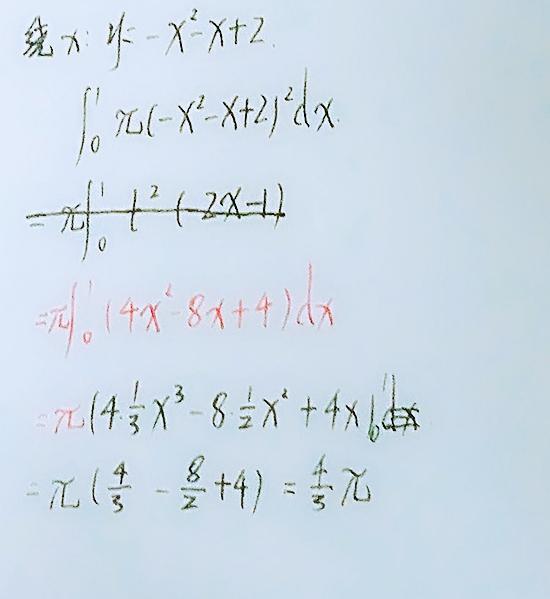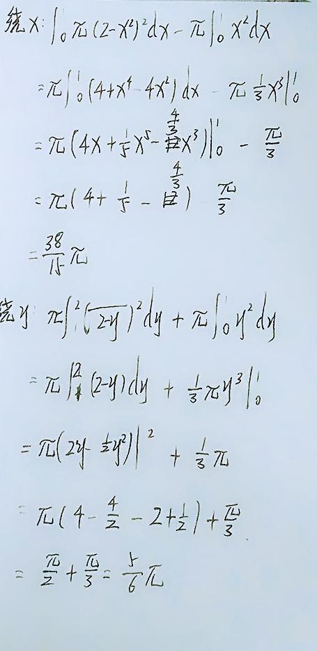 第二个大家要注意是对Y积分,因为它是对y旋转嘛。再就是不要忘了平方,还有Π。