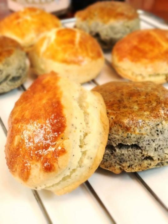 司康饼也叫英式松饼,口感酥松。第一次吃司康是在一家专做司康的甜点店,配上一杯店里自制的红茶,两者相结合,司康的甜都会被茶味冲淡。就是真没想过吃司康还有讲究一说,一般拿到手就直接开始咬着吃。直到某天看了一个视频,一个小小的方块司康,一边转一边轻捏,一边转一边轻捏,直到分成两半。在掰开的两半大小不等、凹凸起伏的表面上,用黄油刀刮一点凝固的奶油和果酱,均匀涂抹在司康表面上,然后再一小口一小口慢慢吃。