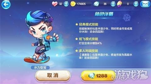 水力型宝触发他的技能时可以化身为冲浪能手,将金币变成高分的水珠,吃到这些水珠可以获得高的分,还就就是在炫飞模式的情况下吃到豆豆增加表现分,是不是很酷,还有奥,水力型宝还是一位会四连跳的角色。