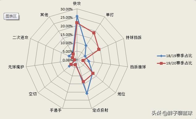 2、 合理选择出手机会,提升命中率:对比本赛季与上赛季西亚卡姆的数据我们可以发现,虽然西亚卡姆得分是比上赛季提高了6.7分,但是这是建立在更多的出手次数之上,实际上他的投篮命中率下降明显,投篮命中率从54.9%下滑到45.9%,三分命中率从36.9%下滑到35.9%,真是命中率从62.8%下滑到55.9%,这需要他在后面的比赛中要注意自己出手时机的选择,提高命中率,那么他在进攻端的杀伤力将会更大。