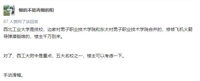 还有说西工大就是西工大附中的附属大学,一个修飞机导弹潜水艇的技校罢了。↓↓↓