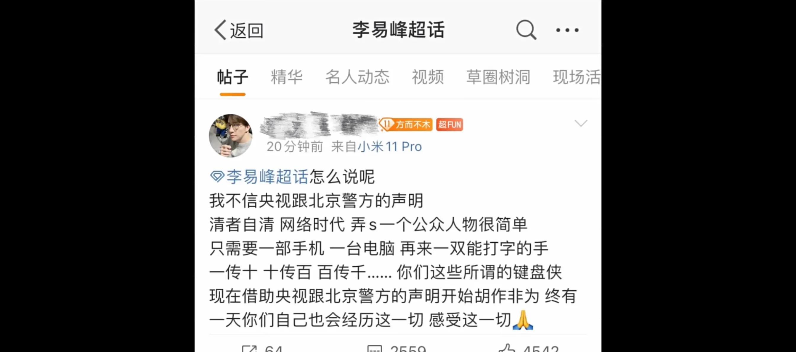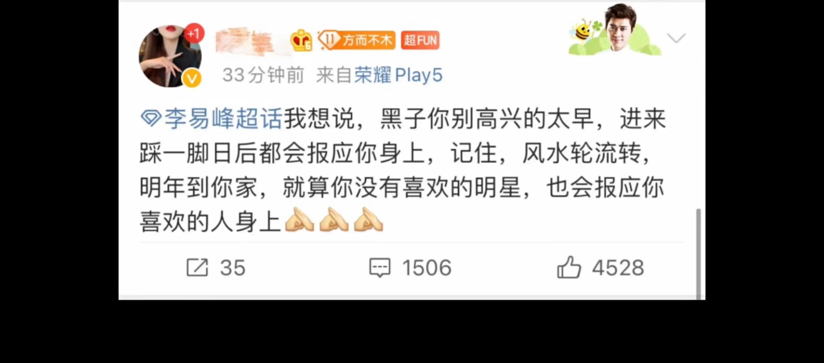 按常理来说,这样一位肇事、嫖娼,可以说是屡次触及法律的高压线,道德败坏的艺人,在娱乐圈中从此应该再无容身之地。惊讶的是,在李易峰的个人超话中,还有许多粉丝发表逆天的言论。