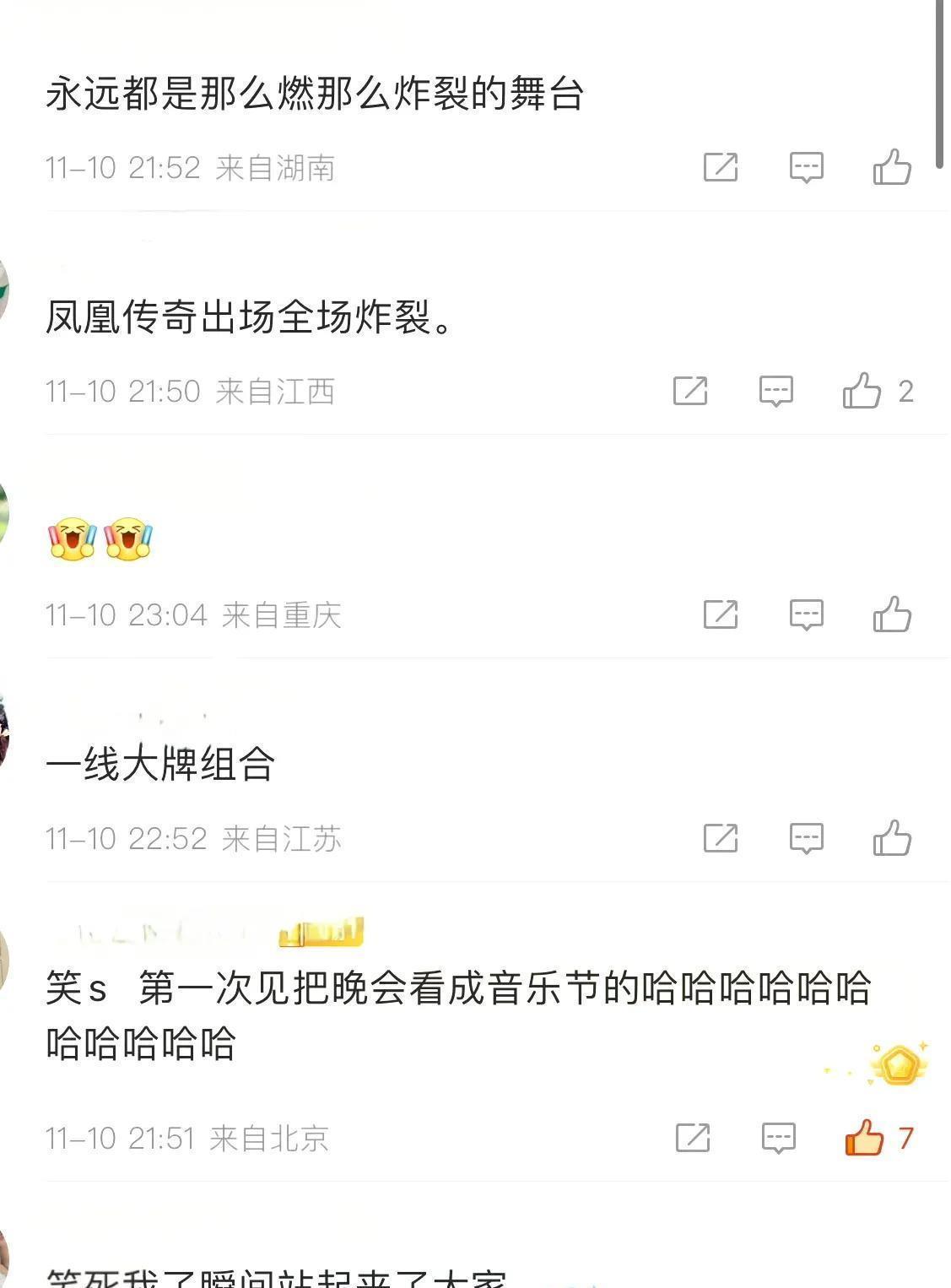 而周深的舞台效果以及凤凰传奇的蹦迪现场也很出色。