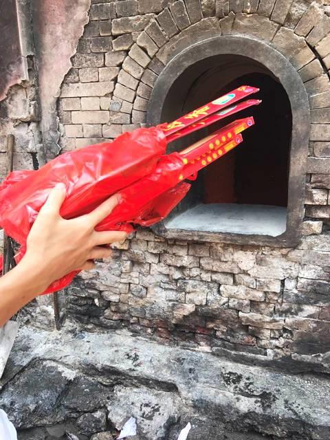 烧香的时候,先在香炉边拜三拜,许下愿望然后把香、烛投入香炉,只留下一束写了名字的最长的大拜香不投入。