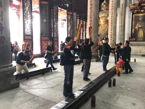 然后把高香拿在手上,再到庙里的其他各个殿去叩拜菩萨。