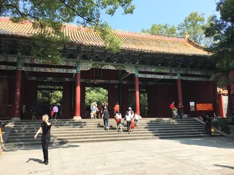 4第四进御碑亭。木结构,八角重檐歇山顶建筑。又叫百寿亭,四周檐板上撰有100个字体各异的“寿”字,无一雷同,祈愿朝圣的人们福寿安康、延年益寿。