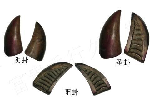 打卦 一副“卦”有2片的。现在的卦一般都是竹子或檀香木制作。 打出来的卦分为“阴卦”(卦相不好)、“阳卦”(卦相中等好)、“阴阳卦”(卦相非常好)三种。 “阴卦”的卦相为:2个卦片都是内面向下,外面向上。 “阳卦”的卦相为:2个卦片都是内面向上,外面向上。) “阴阳卦”的卦相为:一个卦片向上,一个向下。