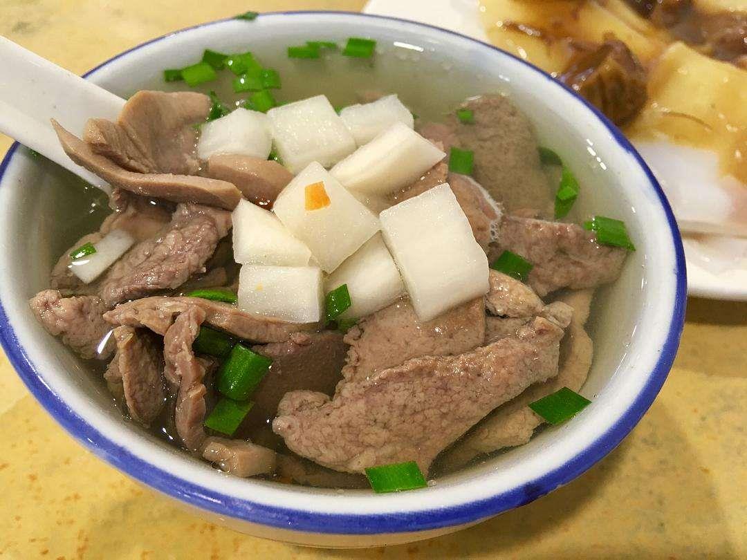 牛三星的主流食法是汤焯偶尔会配粉面,汤清甜鲜美,每样杂都切得薄薄的。我第一次吃牛三星的时候,就被这种又薄又嫩又爽脆的口感惊艳到。从来没有想过内脏也可以做得如此爽口,颠覆了对牛杂的认知。配上腌白萝卜粒,整碗汤的鲜度又提上一个层次,也把牛三星的膻味进一步降低。将牛下水处理得如此独到,真的佩服发明这做法的人兄。