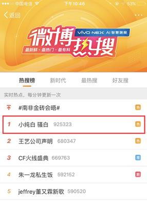 纯白在快手举办活动被封直播间,随后微博宣布转会斗鱼,在7月29号晚上,纯白携手张馨予开启斗鱼首秀,首秀当天,纯白送出了价值100万礼物,其中包含一辆跑车,更是在直播间第一次露脸