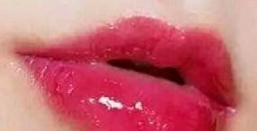 唇色由内向外渐渐变浅。
