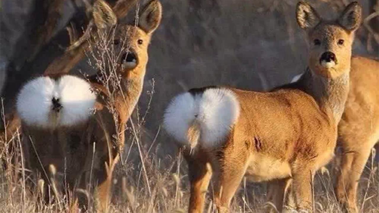 傻狍子的尾巴处的白色毛发在动物中并不罕见,比如:藏羚羊的臀部也有白毛,在遇到危险时,它们也会炸开白毛。