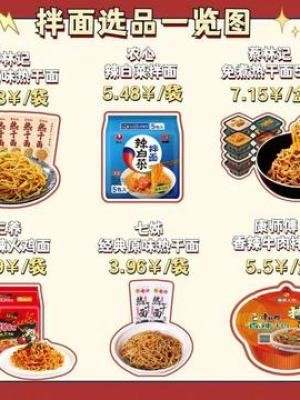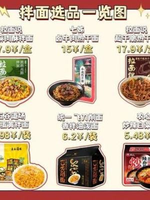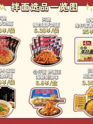 本次我们共挑选了各电商煮平台上销量排名拌靠前、各内容平台上种草分享较多的61款拌面产品。单价从1.98~25元不等,涵盖了火鸡面、热干面、椒麻鸡面等多个种类。