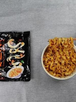 测评官A:好吃面好的!很接近麻辣小龙虾的一包味道,且没有腥臭味。辣度中上,偏细的面条更适口,但是有点咸,可以少放一点酱包~