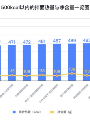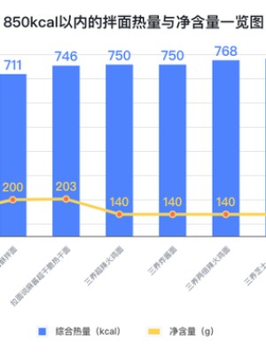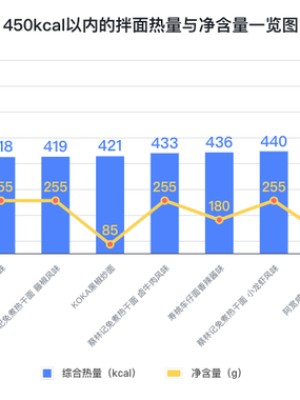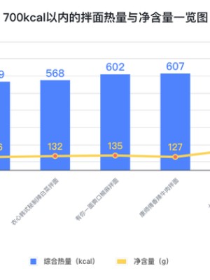 但是热量口味的高低或多或少和产品的净含量有关。100g~200g的拌面热量大都在400kcal~600kcal之间。