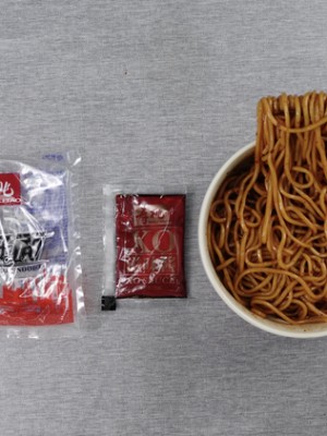 里面含一个非油炸面饼、一袋酱包和一袋海苔芝麻包。制作时仅需将面饼放入沸水中冲泡4分钟,同时将酱包放上面预热,然后滤干水分,加入酱包搅拌即可。