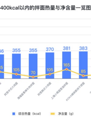 总热量在做200kcal以上即为高热食品,可以看出几乎所有的拌面都是高热量食物,大家可以通过少放酱包或减少食量来控制热量的摄入。