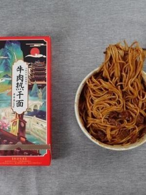 内含一块日晒面饼、一个酱汁包、一个酱料包和一个干葱包。制作时需要酱面条煮7~9分钟捞出,再加入酱料包拌均即可。