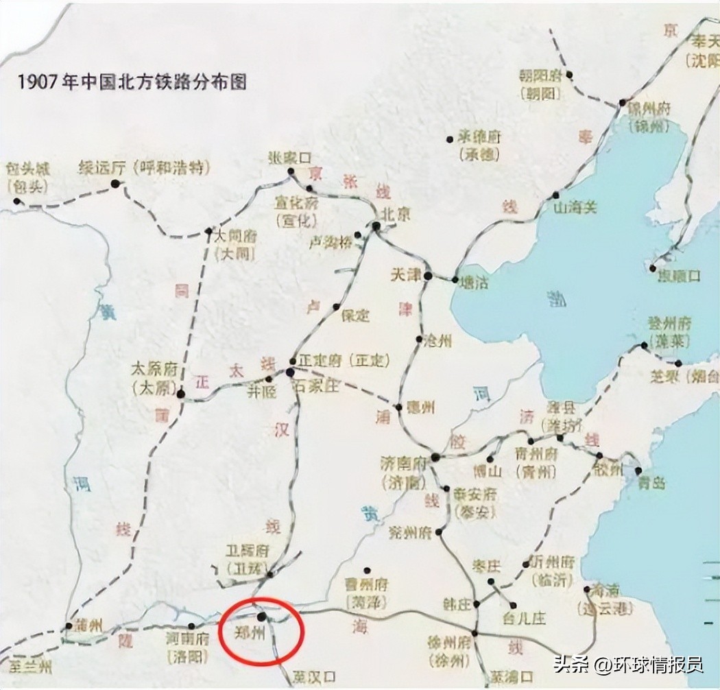 ▲郑州(当时叫郑县)成为京汉、汴洛铁路交汇点