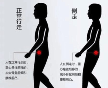 在锻炼时,倒走脚尖先着地,脚后跟后着地。频繁的脚尖活动会刺激脚上的经络、穴位和各部的反射区,同时也能不停地变换关节角度,增加韧带强度,活动肌肉群。