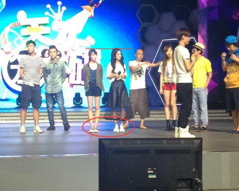 小张赶紧去围观,发现照片中两人的确站起来在同一水平线上,不过吴敏霞穿的是平底运动鞋,而赵丽颖的鞋跟目测没有12公分,8公分也跑不掉啊!