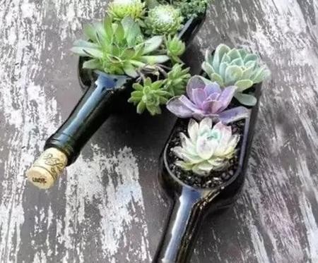 酒瓶还可以分割下,底下打上孔,做花盆。记得打孔保持透气性,也是很漂亮的。切割的时候注意自身安全哦!