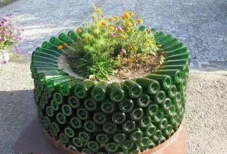 如果酒瓶很多的话,小编建议可以做一个花坛,独一无二的,放在院子里也很养眼呢!