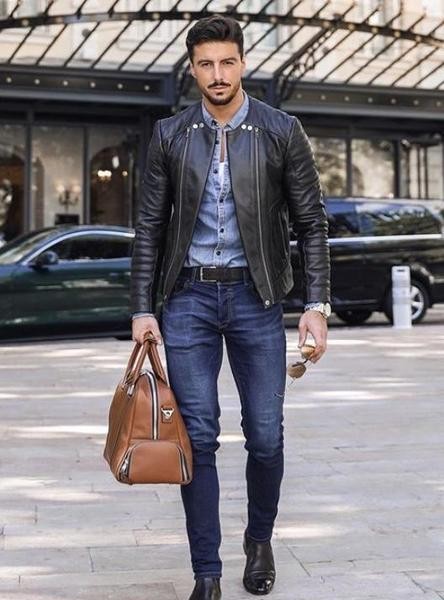 然后还有另外一种风格也常常接近于帅,那就是非常有冷酷感的机车风格,有种坏坏的痞感。皮夹克搭配机车裤也好,或者牛仔裤也好,都能够给人一种帅,型,痞的感觉,这也是为什么每个男人都有一种皮衣情节的原因。