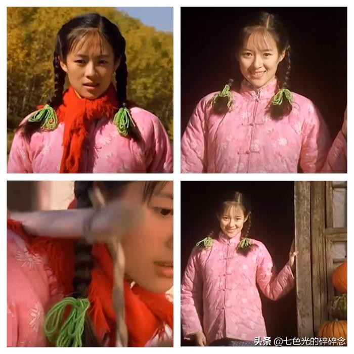 粉红色与绿色的组合:纯真的色彩。粉红色所占的比重越大,有关纯真特性的比重则越大。招娣穿粉红色花袄配绿头绳,表现出过去那个年代一个女孩纯真的感情。