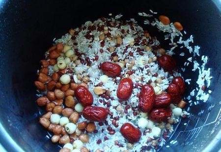做法1、把这大米和糯米、红小豆、杏仁、莲子、薏米、花生米、鹰嘴豆洗洗