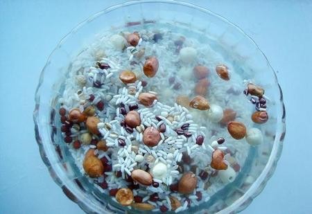 1、将准备好的豆类和糯米淘洗干净,用清水浸泡一夜。