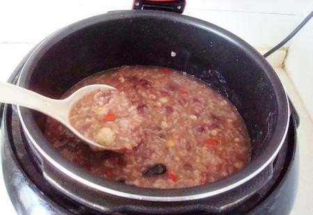 3、加进去电压力锅里,(如果没有电压力锅,这些杂粮,要用凉水泡一夜红枣3小时以上的,可以用砂锅熬制),也可以用电饭煲熬制