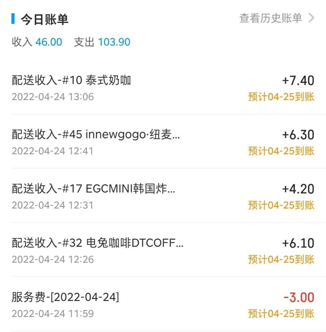 回程单送完,悠悠哉哉骑回家,喝口水,心情舒畅。看看自己跑了4单,充实、满意。